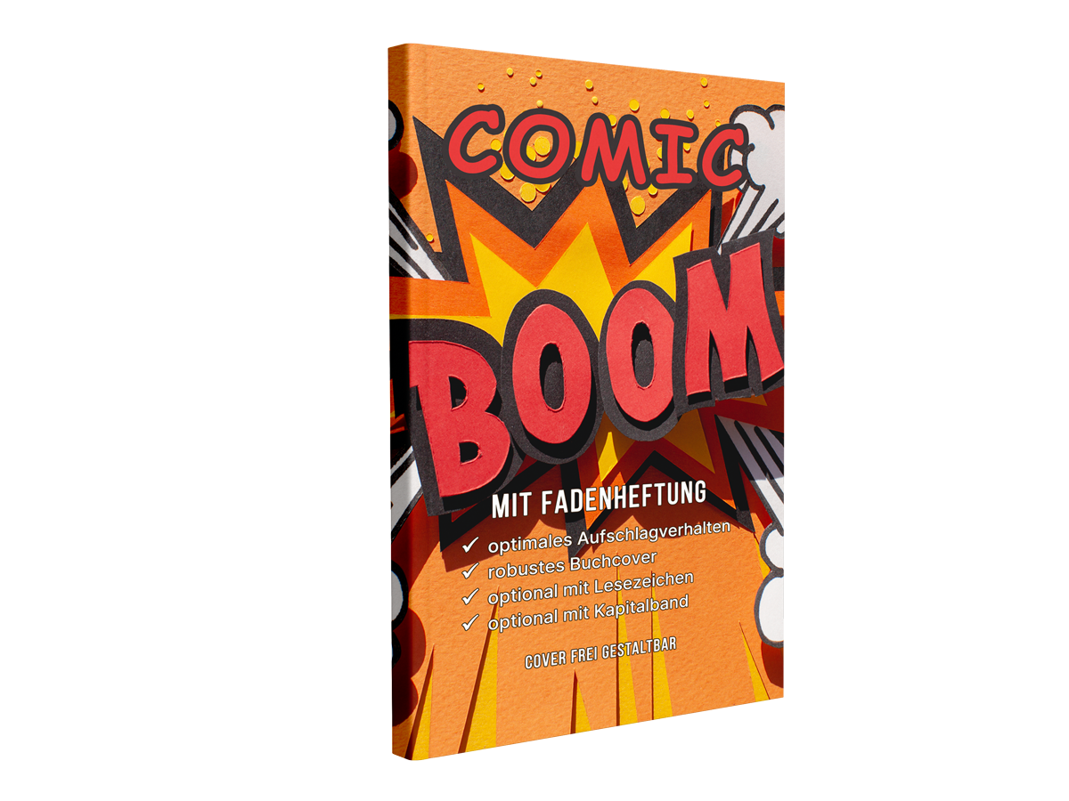 Wir bieten für Comics sowohl Softcover mit Klebebindung als auch Hardcover mit Fadenheftung an. Für langlebige, edle Sammler- und Sonderausgaben empfehlen wir das Hardcover mit Fadenheftung – robust, stabil und mit perfektem Aufschlagverhalten. Softcover-Varianten eignen sich dagegen für handliche, flexible Ausgaben, die besonders alltagstauglich sind.
